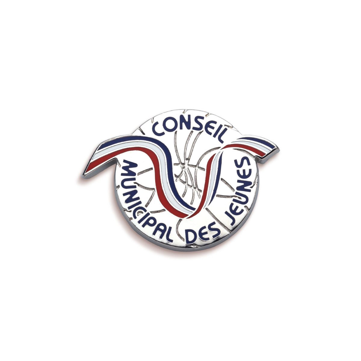 Cet insigne de forme ronde est argenté et doté de l'inscription "Conseil Municipal des Jeunes". Au milieu, vous retrouverez une banderole tricolore "bleu-blanc-rouge". Le diamètre de celui-ci est de 20 millimètres. Fixation pin's.