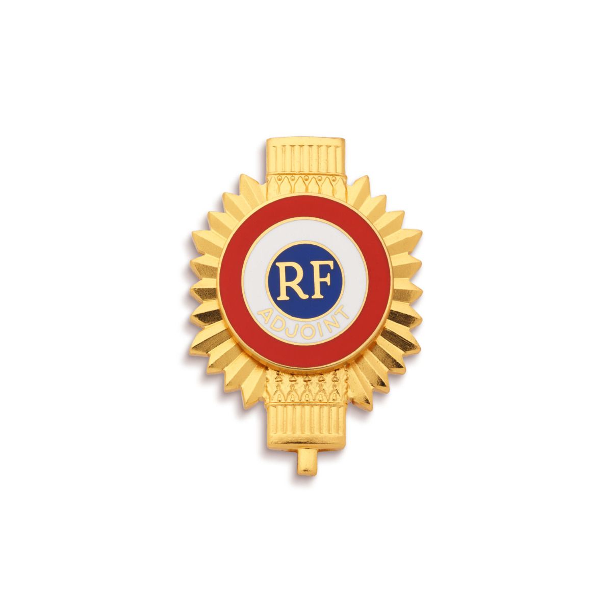 Avec sa couronne métallique et sa cocarde tricolore cocarde tricolore au centre, portant les inscriptions "RF" et "Adjoint", cet insigne est conçu pour mettre en avant votre rôle de Maire-Adjoint.