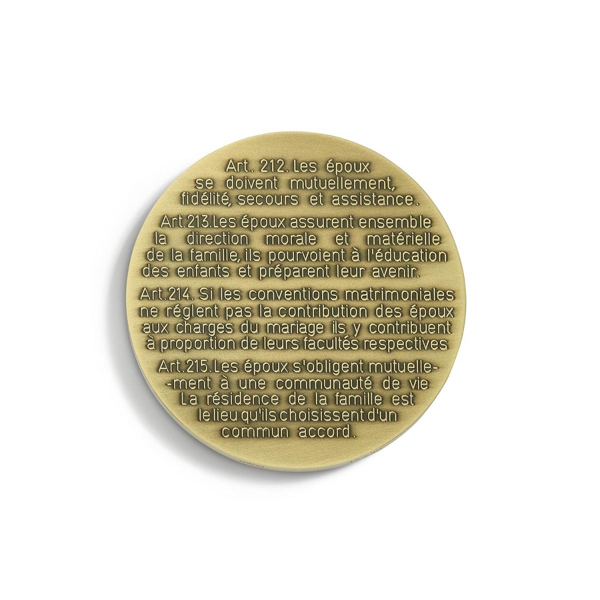 Au revers, on y retrouve les articles de loi lus pendant la cérémonie à la mairie.