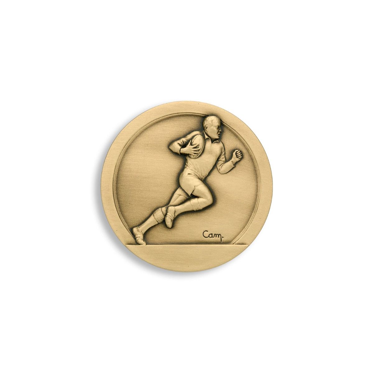 Fabriquée en bronze patiné dans notre atelier français, cette pièce représente un rugbyman lancé dans sa course, symbole de la puissance et de la solidarité de l'ovalie. Une pièce robuste pour tous les passionnés de rugby.