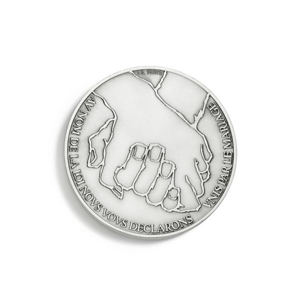 Illustrant la force de s'unir et de construire quelque chose ensemble, son revers est conçu pour accueillir une gravure personnalisée, rendant chaque médaille unique et significative pour célébrer un engagement ou une union spéciale.
