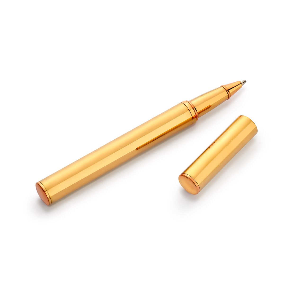 Ce stylo à pointe roller et encre noire est fabriqué à partir d’un alliage composé à 85 % de cuivre et non traité, pour préserver les propriétés naturelles du métal.